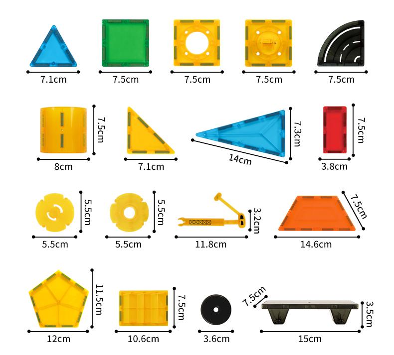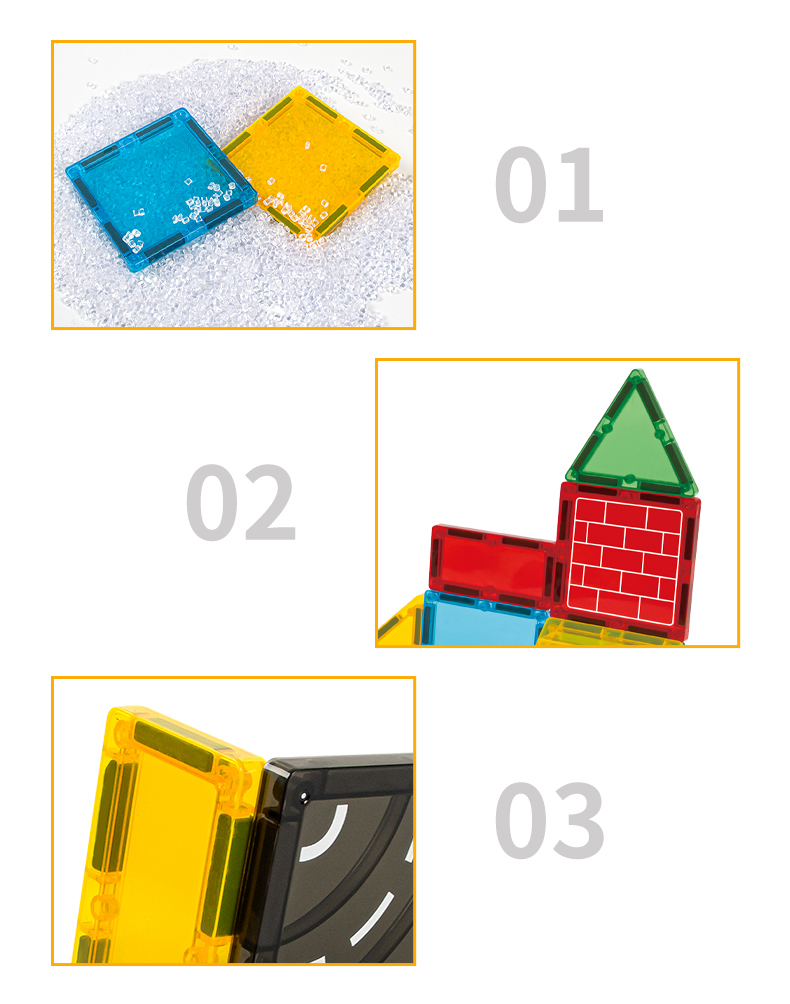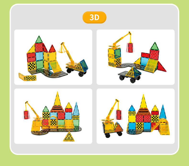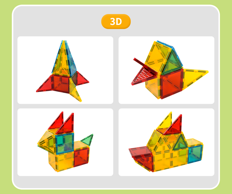 Deli se enostavno povezujejo s pomočjo močnih magnetov, kar omogoča izdelavo različnih oblik, hišk, stolpov, gradov ali edinstvenih umetniških modelov. Magnetni gradniki združujejo zabavo, ustvarjanje in estetiko ter spodbujajo fino motoriko, domišljijo in občutek za lepoto.