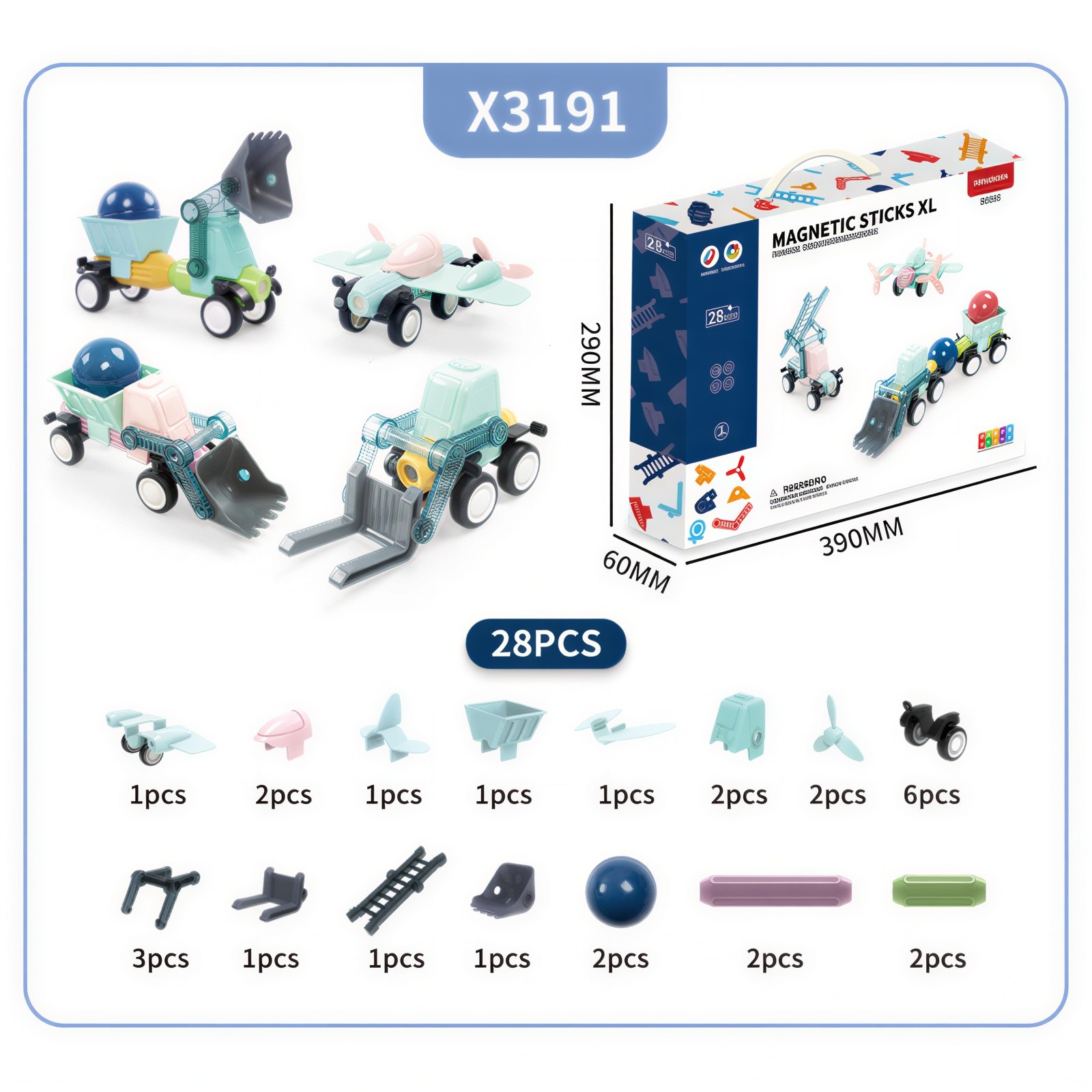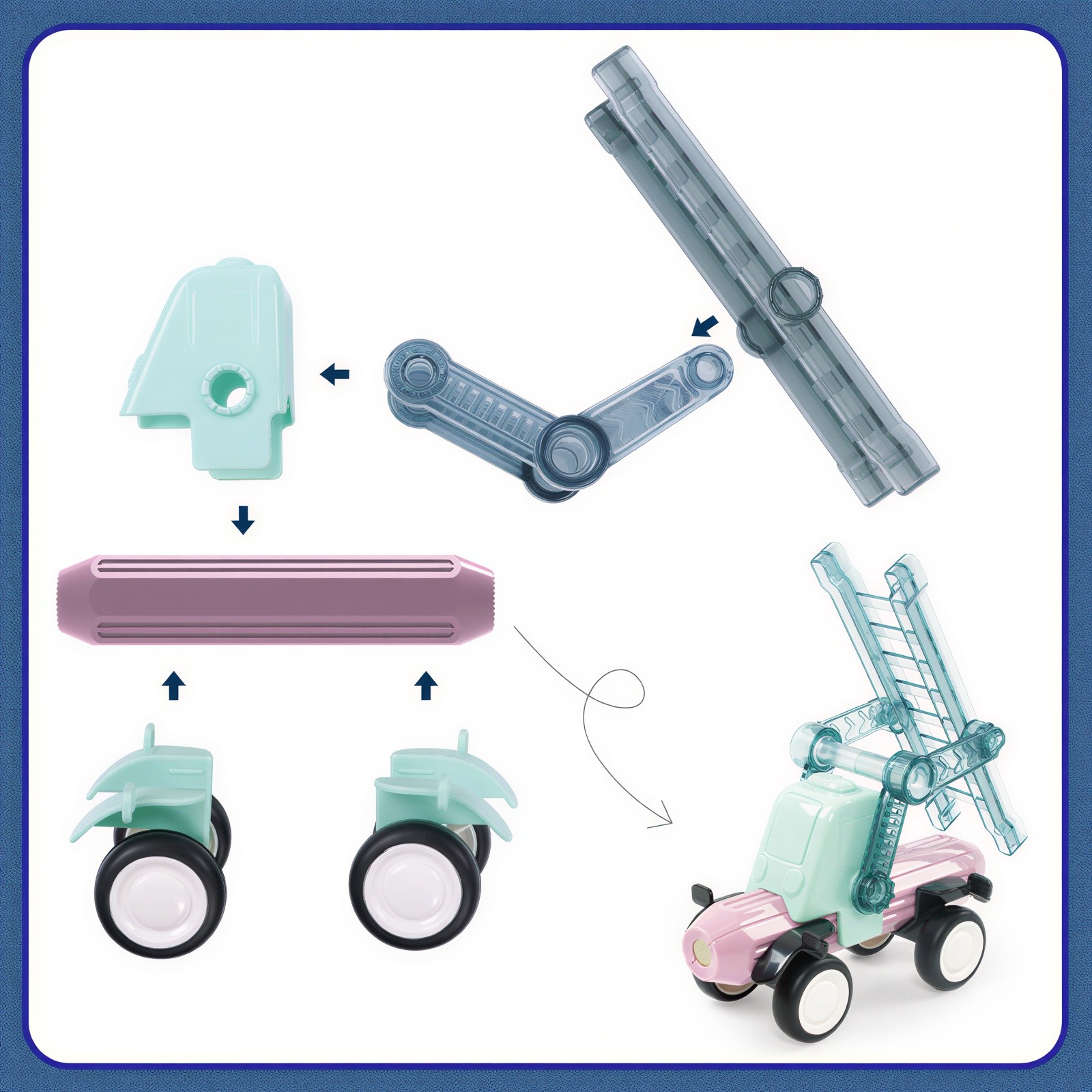 Deli se enostavno povezujejo s pomočjo močnih magnetov, kar omogoča izdelavo različnih oblik, hišk, stolpov, gradov ali edinstvenih umetniških modelov. Magnetni gradniki združujejo zabavo, ustvarjanje in estetiko ter spodbujajo fino motoriko, domišljijo in občutek za lepoto.