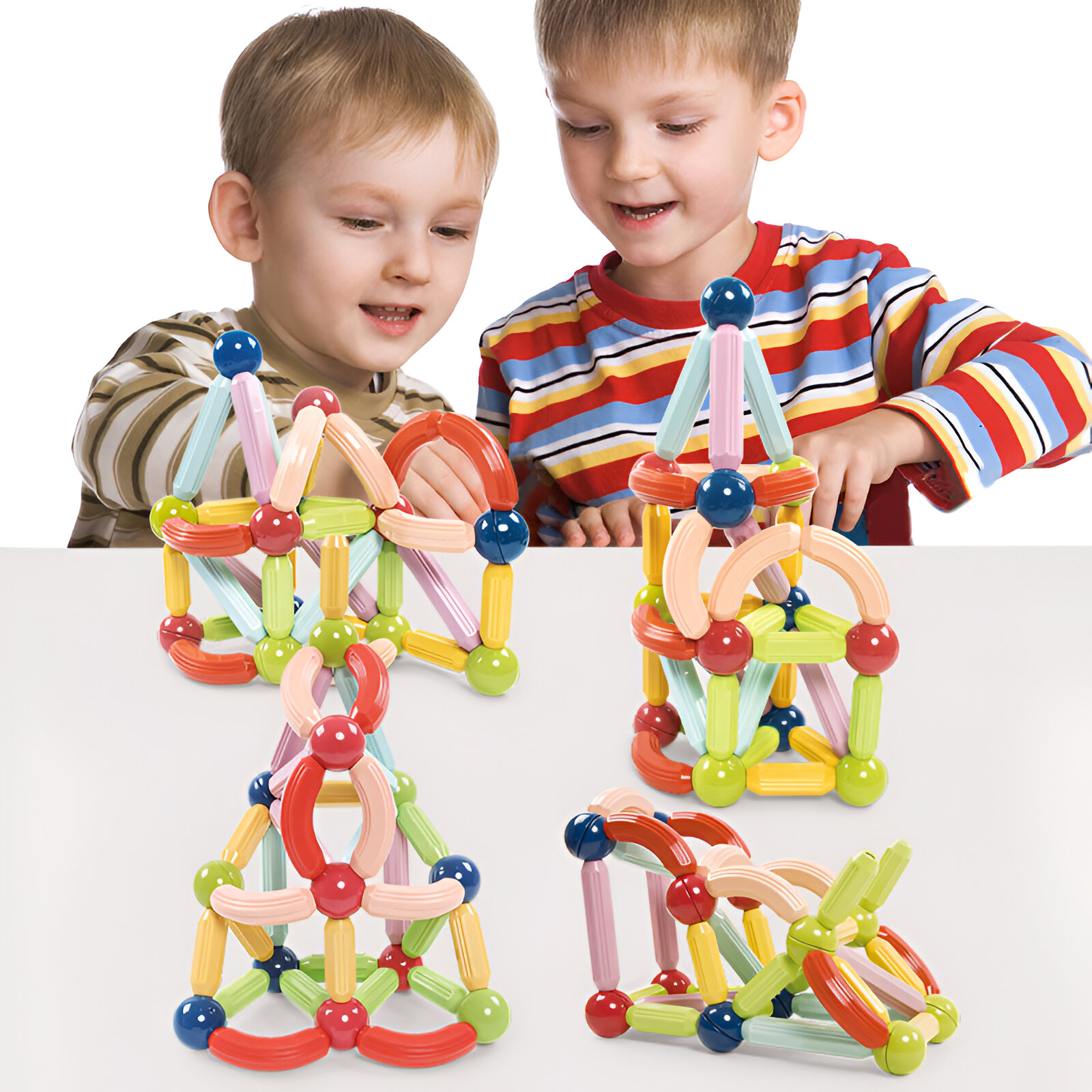 Deli se enostavno povezujejo s pomočjo močnih magnetov, kar omogoča izdelavo različnih oblik, hišk, stolpov, gradov ali edinstvenih umetniških modelov. Magnetni gradniki združujejo zabavo, ustvarjanje in estetiko ter spodbujajo fino motoriko, domišljijo in občutek za lepoto.